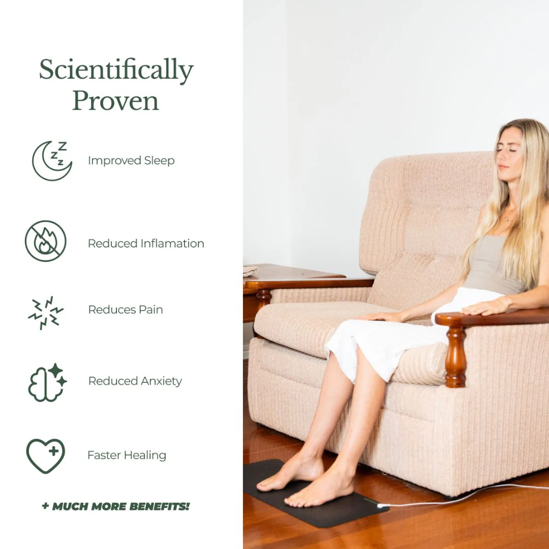 - A specially designed indoor grounding product incorporating conductive materials to help connect with the Earth's natural electrical charge from home.